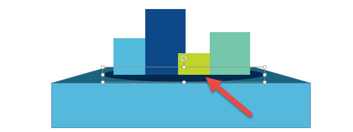 第三步:设置柱形图“阴影”注意这个阴影其实也是“假”的,不是用到真正的阴影设置,而是拖拽一个椭圆,放置在柱形图的下方而已。拖拽置下图箭头2处效果。