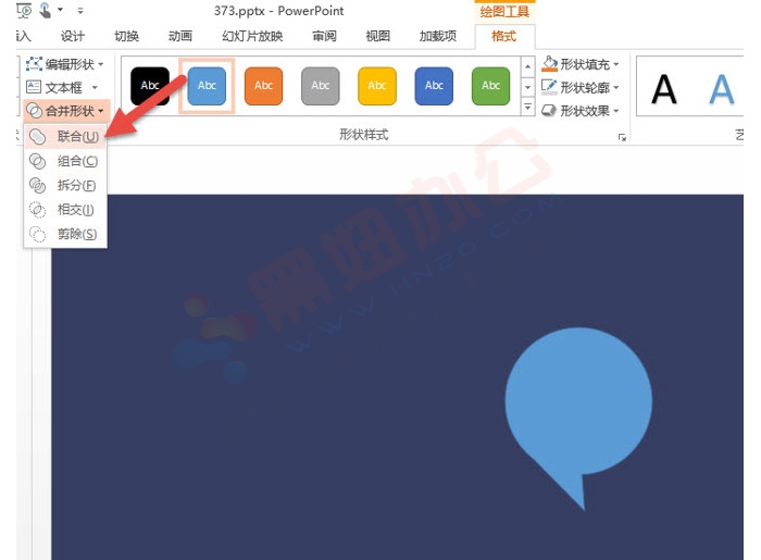 选中圆形和三角形,点击“合并形状—联合”按钮,将其组合成一个图形。