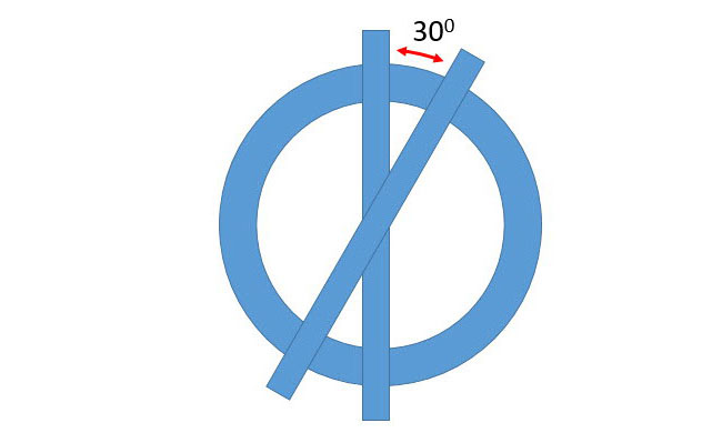 接下来复制一个矩形,然后按住Shift键,鼠标拖拽旋转调节钮,可进行每15度的旋转。调节到30度的位置。如下图所示: