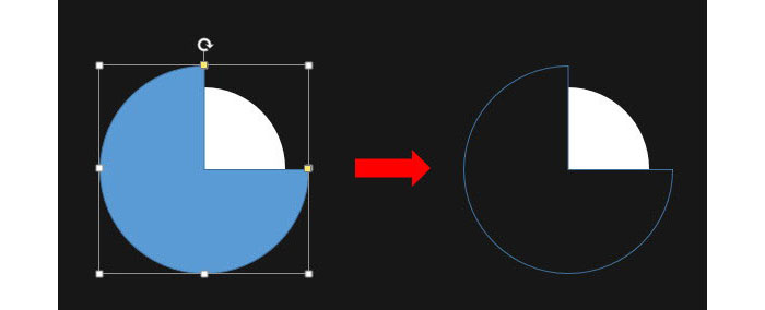拖拽出来的饼形要比白色的圆大一些,并置于相同的圆心,并将饼形设置为与背景一样的颜色。并去除轮廓线。(这里为了让大家清楚与理解,牛闪闪并没有去除轮廓线)