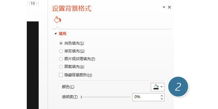 这个图如果不考虑数据生成既信息图表表达的话,用图形很容易绘制出这类图形表达。场景:企业财务、人事、市场、行政部等需要PPT制作的职场人士。问题:如何PPT快速绘制一个局部环形图形表达?解答:利用PPT图形绘制功能搞定。具体操作方法如下:新建一个PPT,在空白处点击鼠标右键,在新弹菜单中“设置背景格式”。(下图1处)在新弹菜单中,将背景颜色设置为深灰黑色,具体可以用2013的颜色选色器去取之前样图的