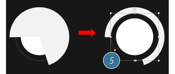 接着按照前面第3步,继续绘制一个饼图,饼图比之前的饼图还要大。然后旋转其方向,设置为灰色,并置于底层。效果如下图5处。注意此时旋转之前的黑色饼形可以方便遮挡灰色饼图的部分,使之让饼形看上去是环形。