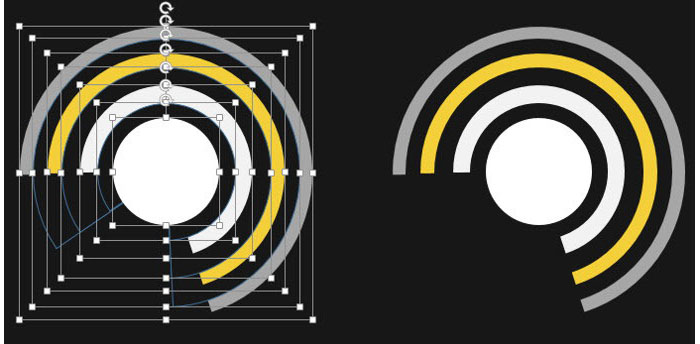 那么这个局部图的环形图的素材库就做好了。以后只需要拖拽黑色饼图或有色饼图的黄色旋转标记,就可以方便来调整需要的百分比。