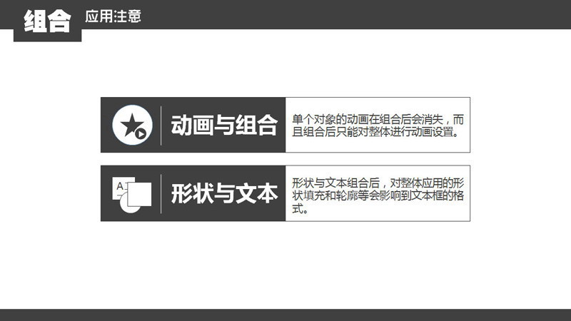 4、PPT组合功能应用注意事项: